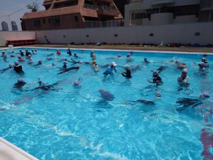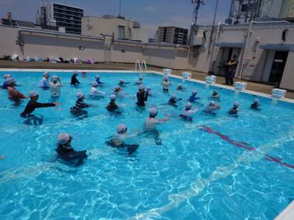普段している水慣れの水中ダンスも、服を着るとずいぶん違うようです。