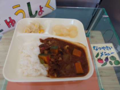 今日の夏野菜は、かぼちゃ・なす・トマト・ピーマンとたっぷり入っています。
