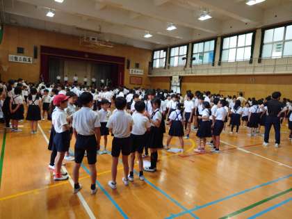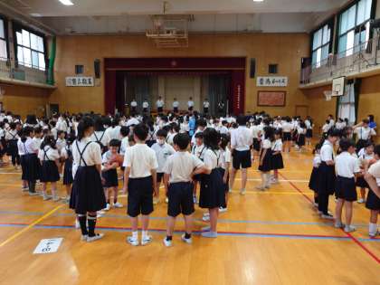 今朝の児童集会は、講堂で「ゴロゴロ ドカン!」をしました。