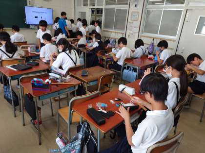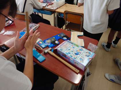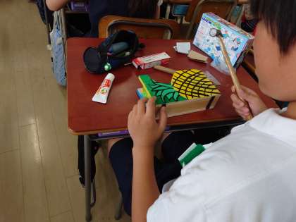 図画工作科で作ってきたテープカッターもいよいよ完成に近づいてきました。