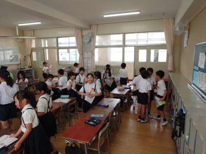 教室内で、じゃんけん大会を開催すると、みんな大盛り上がりで楽しみました。
