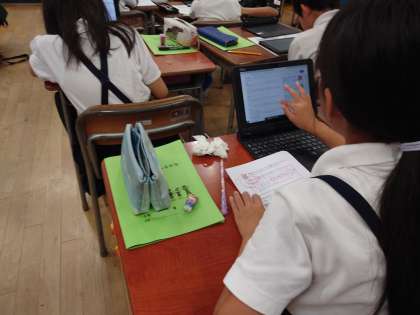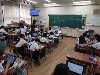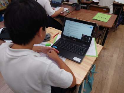 総合的読解力の学習で、4年生は日本と海外のコミュニケーションとの違いについて書かれた文章を要約しながら、外国人とのコミュニケーションの仕方について考えます。