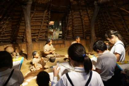竪穴住居の発掘と組み立ての体験もしました。