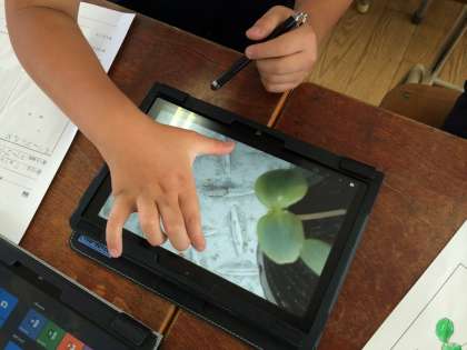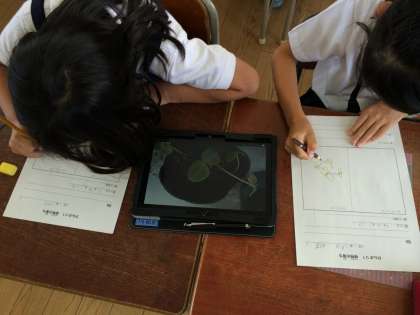 日付の違う写真を見比べたり、指を広げてアップにして詳しく観察したりと、タブレットの良さを生かしながら学習することができました。