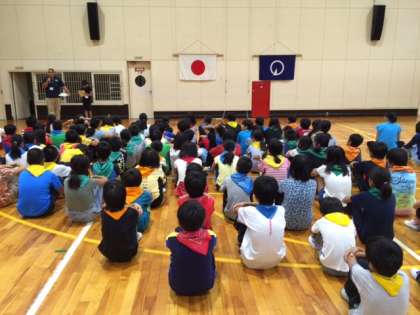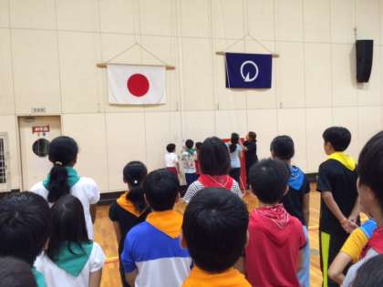 おはようございます。2日目の活動がはじまりました。みんな元気です。天気は曇り、少しは日が差しています。午前中は、予定通り野外炊飯をしますが、天候によっては午後のプログラムが変更になるかもしれません。