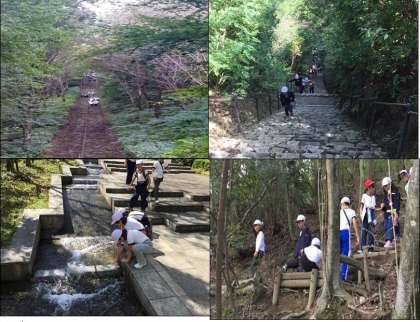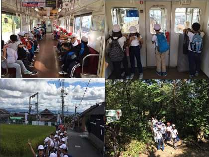 道中は、仲間と乗る電車、秋の自然、大阪とは違う風土を楽しむことができました。二上山ふるさと公園につくと、3・4年生合同のメンバーでオリエンテーリングをしました。456段もある階段を登ったり、アスレチックのような林道を下ったりして園内も満喫しました。