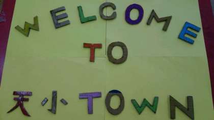 段ボールを使って不思議な町を表現しました。土曜授業の際に、3年2組の教室に展示しますのでぜひ見てください。
