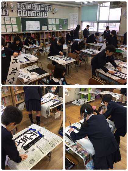 書く文字は、4年生を象徴している「元気な子」です。「とめ」「はね」「はらい」に留意しながら自分らしい字を書いていました。特に、この字の中で「な」が一番難しく、ふでを回して書くところでは、注意深く筆をすすめていました。