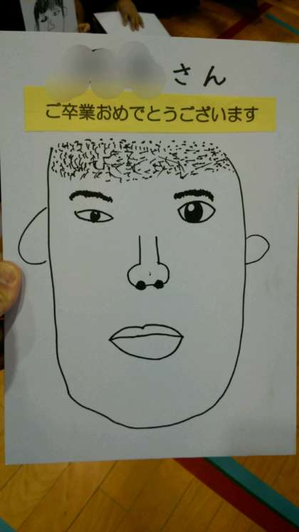 (下)似顔絵リレーでできた作品「私は誰でしょう」