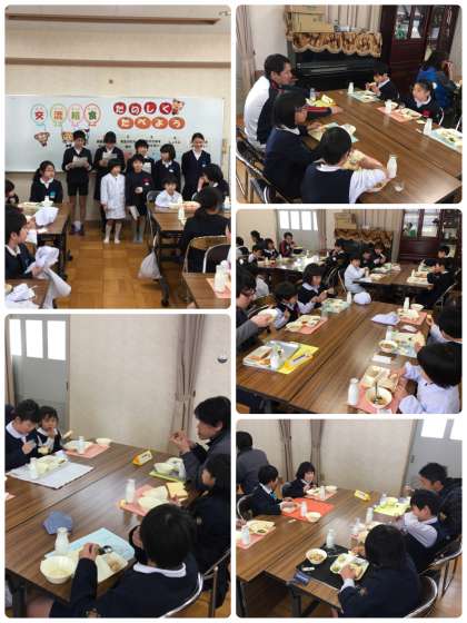 流行性の風邪などで延期になっていた1年生と4年生との交流給食が行われました。