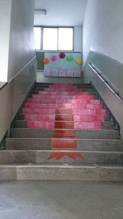 なかよし学級の児童全員が、「ありがとう」の気持ちをこめて階段アートを作成しました。