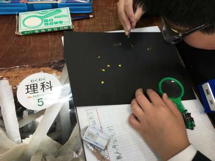 細かい作業に苦戦していましたが、花びら・がく・めしべ・おしべと分けることができました。また、めしべの中から種子を取り出すこともできました。