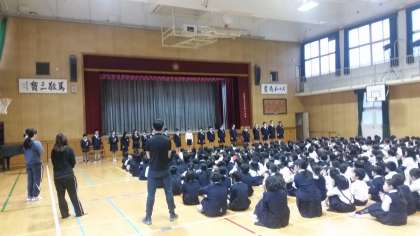 今日は児童集会がありました。各委員会代表が紹介され、一年の抱負が発表されました。
