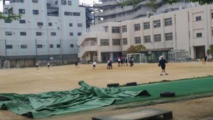 小雨が降ってきましたが、子どもたちは登校後、元気に校庭で遊んでいます。