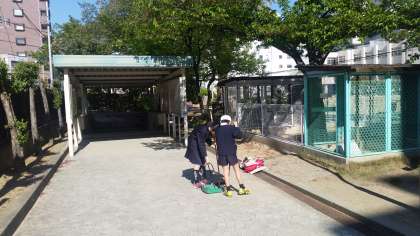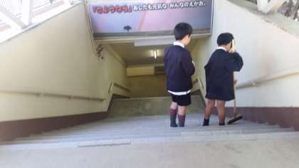 美化委員がうさぎ小屋前と地下道階段のそうじをしています。きれいにしてくれてありがとう。