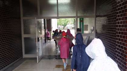 写真は帰校の様子です。雨の降るなか頑張りました。