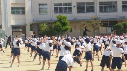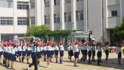 5月28日の運動会にむけて、朝の朝会は体育朝会になります。ラジオ体操や天王寺体操、入場行進や開会式の練習を行います。上級生をリーダーに協力して頑張っています。