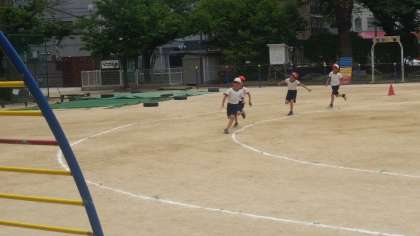 徒競走の様子です。力強い走りです。当日もけがのないように頑張ってほしいと思います。