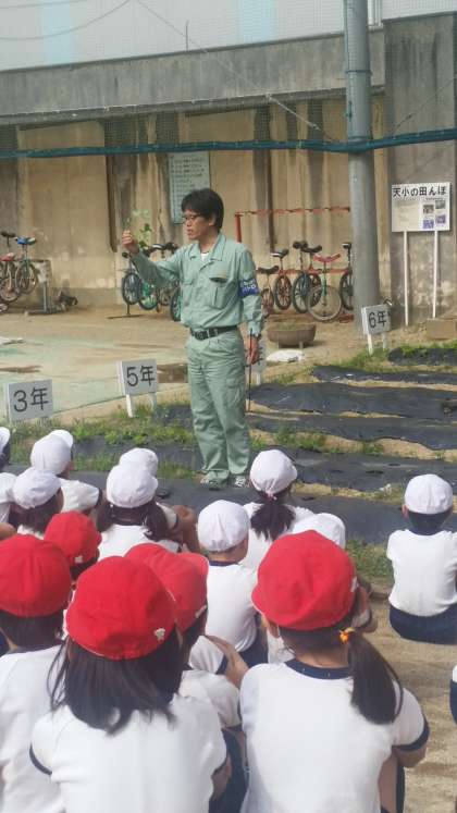 2年生がせいかつかの授業でサツマイモの苗を植えました。
