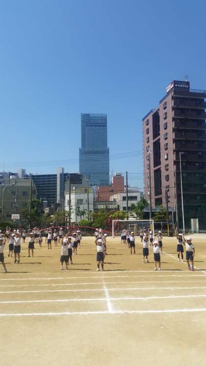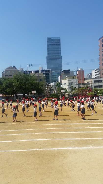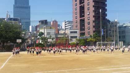 1・2年生の団体演技の練習です。みんな元気いっぱいがんばっています。