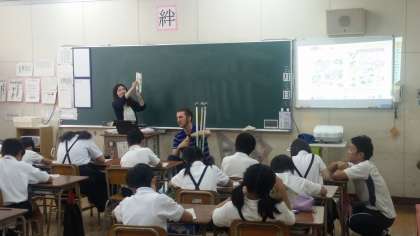 今日の授業は「数」についてです。天王寺中学校のNino先生、福田先生ともに明るく楽しい授業が展開されています。また、授業はほとんど英語でされています。