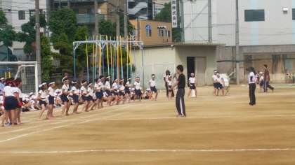今日は体育朝会がありました。各団が応援の練習をしました。団長、副団長のリーダーシップのもと、元気のよい声が聞こえてきます。赤勝て。白勝て。