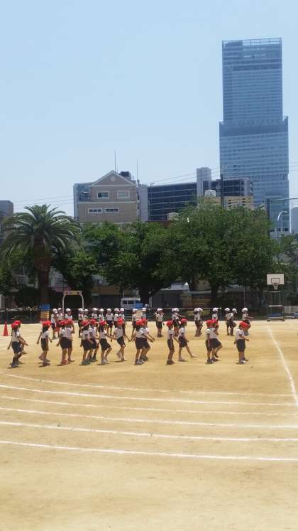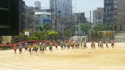 かけっこと忍法大玉ころがしの術の入場の練習です。