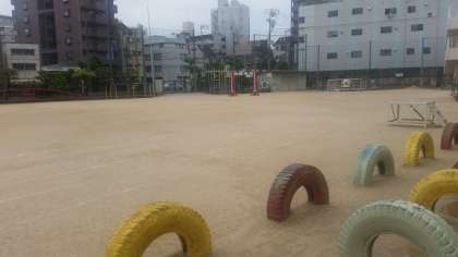 朝からの雨で運動場には水たまりができていましたが、お昼にはほとんど水たまりはなくなっていました。天小の運動場はものすごく水はけがよいです。