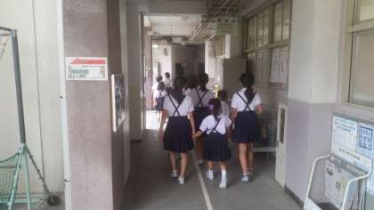 集会終了後、高学年のお兄さん、お姉さんが1年生を教室まで連れて戻ります。