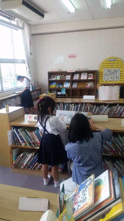 運動場で遊ぶ子どもたち。図書室で本を読む子どもたち。