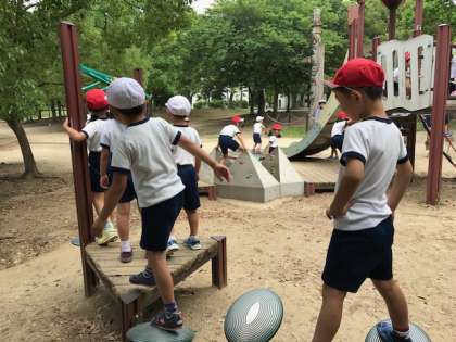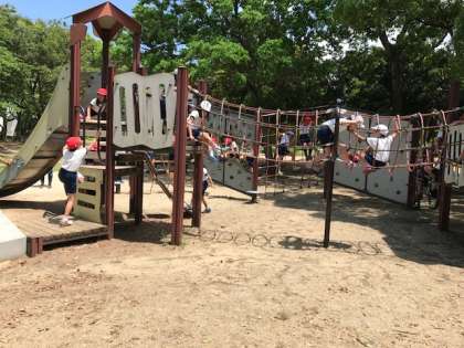 食事のあとは公園あそびです。いろいろな遊具で楽しくあそんでいます。