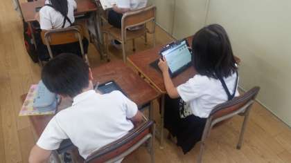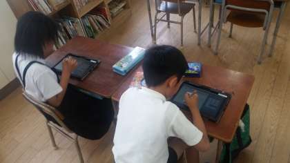 3年生の算数ではタブレットを活用して、足算、引算、余りのある割算等の演習を行っています。