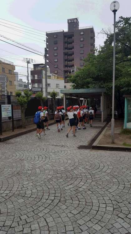 4年生が「服部緑地」に向けて出発しました。天候が心配でしたが、雨も降らず予定どおりに進んでいます。
