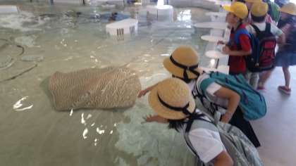 さめやえいに触れることができるコーナーです。
