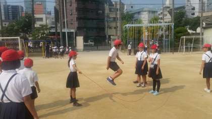 1年生から3年生と4年生から6年生までがそれぞれの時間帯で遊具と縄跳びにわかれて活動をします。