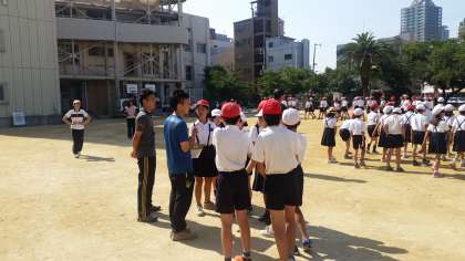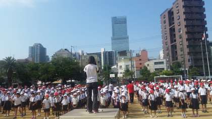 朝会終了後、放送委員のみなさんが「天フェス」について打合わせをしています。