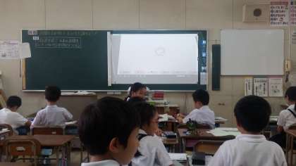 四角形について学んでいます。ICT機器やプリントを活用してわかりやすい授業です。