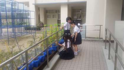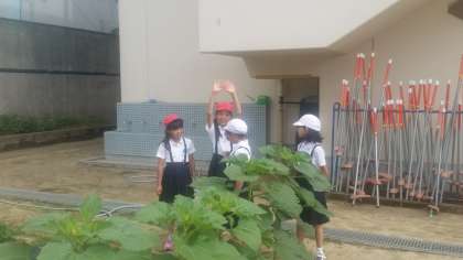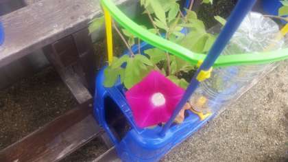 1年生が育てているあさがおもきれいな花を咲かせています。