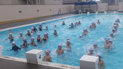 低学年までは水に慣れる運動遊びが中心となります。