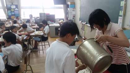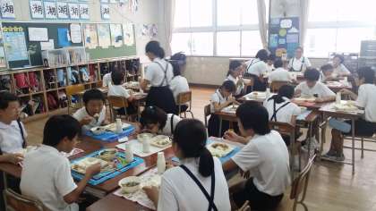 6年生の給食の様子です。楽しそうに食べています。