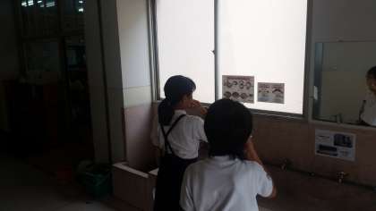 給食の後さっそく歯みがきをする児童の姿がありました。