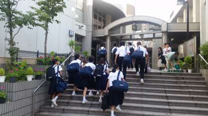 天王寺中学校のお兄さんやお姉さんも元気に登校しています。
