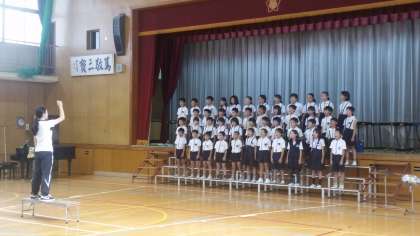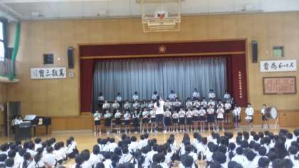 今日の児童集会は5年生による合唱と合奏の音楽集会です。