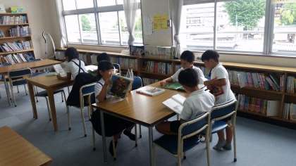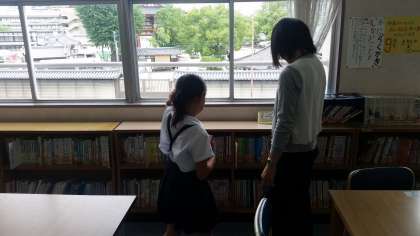 学校図書館補助員さんの支援で本を探す児童も多くいます。
