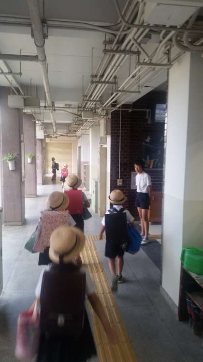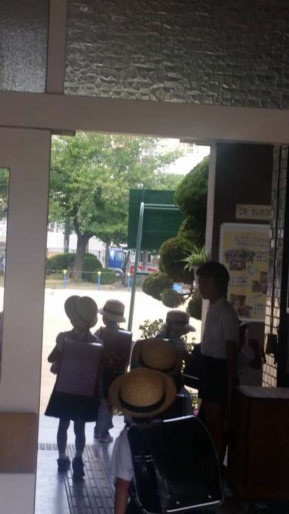 正門のあいさつ当番の様子です。しっかりあいさつができています。
