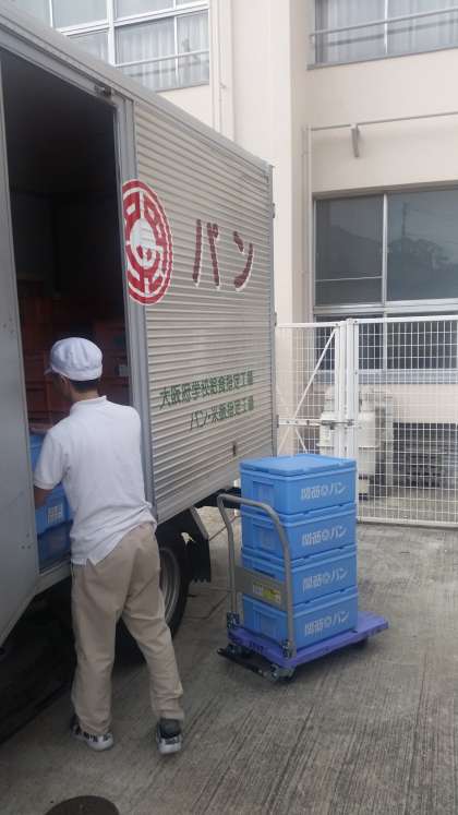 業者による給食の搬入です。