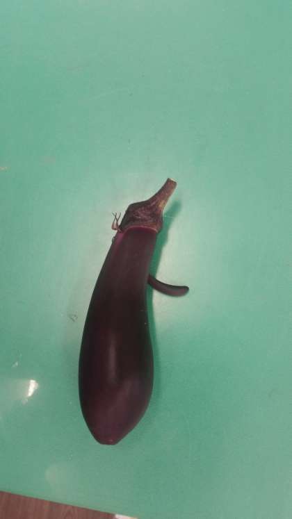 2年生がせいかつかの時間に育てた「てんぐなす」です。
