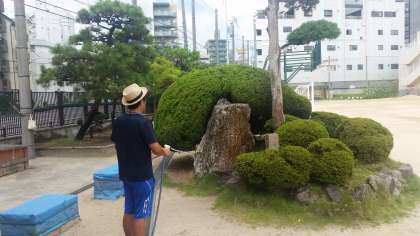地域委員の方が早朝より樹木の散水をしてくださっています。