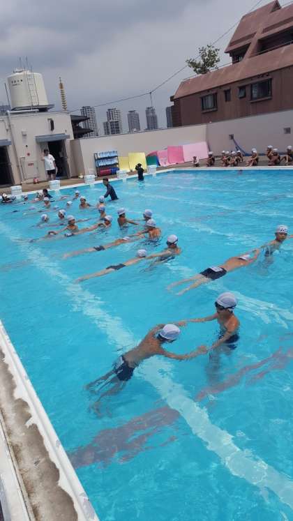 いよいよ夏休みのプール指導も最終回になりました。低学年の子どもたちも元気に頑張りました。