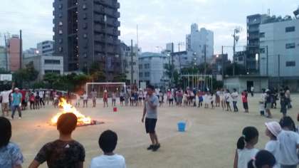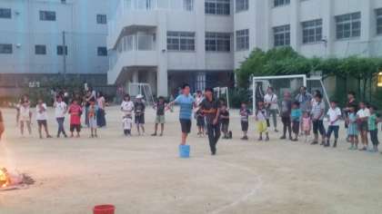 キャンプファイヤー進行は天王寺小学校の早川先生です。